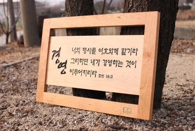 말씀 현판 [Biblical Verse Wood Sign 잠 16:3] Product Info 규격 [Dimension] 660(W) x 26(D) x 450(H) mm 재료 [Material] 단풍나무(Hard Maple) 벚나무(Chreey) 마감 [Finished] ...