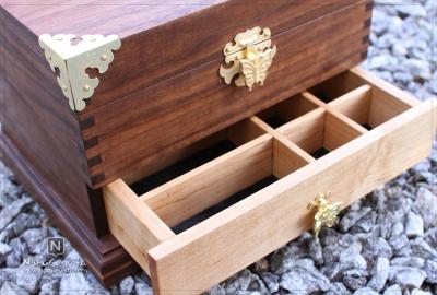 호두나무 보석함 [Black Walnut Wooden Box] Product Info 규격 [Dimension] 270(W) x 200(D) x 150(H) mm 재료 [Material] 호두나무(Black Walnut) 단풍나무(Hard Maple) 융(Cotton) ...