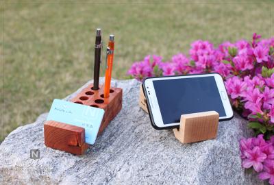 연필꽂이, 명함 메모 꽂이, 스마트폰 거치대 Product Info 규격 [Dimension] 175(W) x 60(D) x 40(H) mm 재료 [Material] 호두나무(Black Walnut) 참죽나무(Cedrela Sinensis) 단풍나...